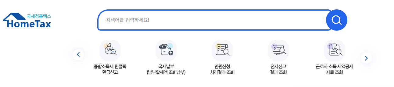 "홈택스"에 접속하면 환급 신청은 매우 간단합니다.