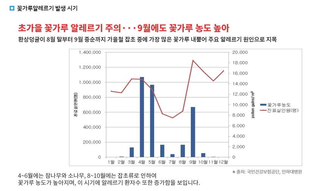 - 환절기 짧아짐 → 알레르기 유발 기간 길어짐