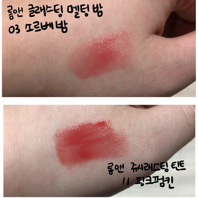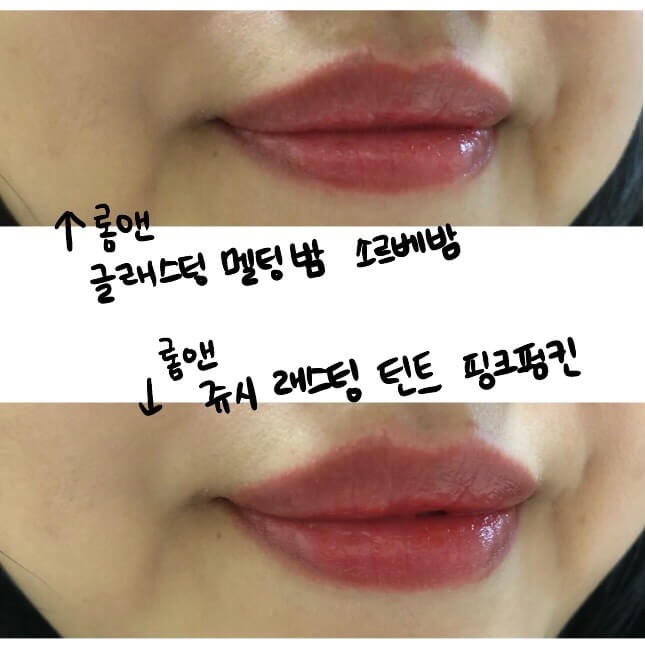 제가 이 색상을 고른 이유는 바로 롬앤 쥬시래스팅 틴트 11 핑크펌킨과 색상이 비슷했기 때문입니다. 개코님도 영상에서 발색을 비교할 때 핑크펌킨을 같이 비교해주셨습니다. 입술이 보랏빛이 도는 저에게 MLBB라는 색상을 유일하게 어울리게 해 준 틴트였습니다.