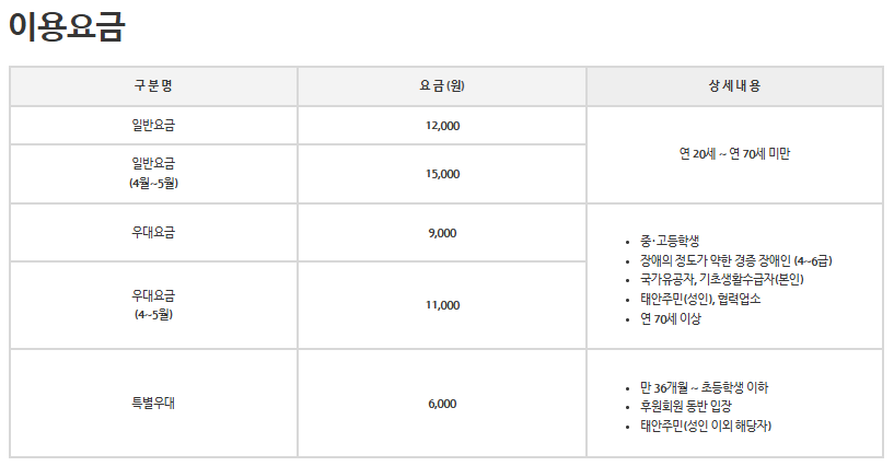 - 입장료: 일반요금 12,000원, 우대요금 9,000원, 특별우대 6,000원