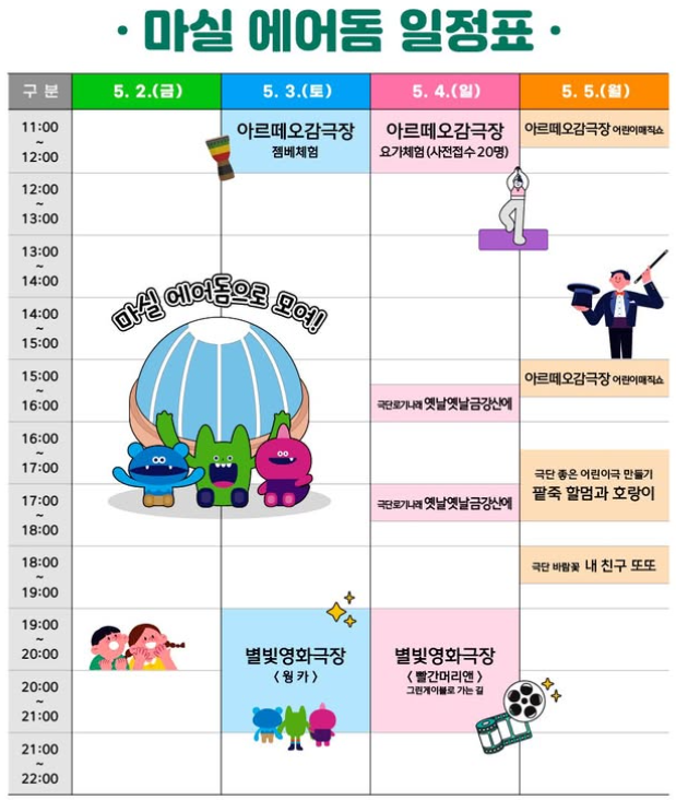 - 우천 대비: 야외 행사 중심이므로 우의나 양산을 준비하시면 유용합니다.