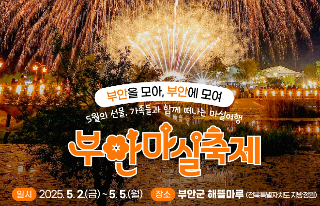 매년 5월이면 전북 부안군은 활기로 가득 찹니다. 이 시기에 열리는 부안 마실 축제는 지역 주민과 관광객이 함께 어우러지는 대표 봄 축제입니다. 2025년에도 다양한 행사와 지역 특산물 체험이 어우러진 프로그램으로 관람객을 맞이할 예정입니다.