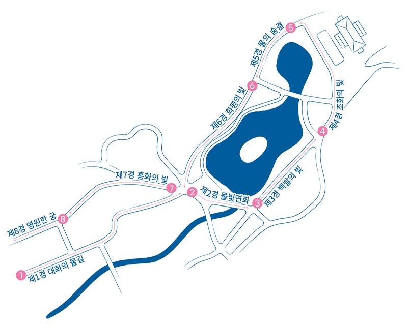이번 창경궁 물빛연화는 1경부터 8경까지 여덟 개의 테마 공간으로 구성돼 있어요.