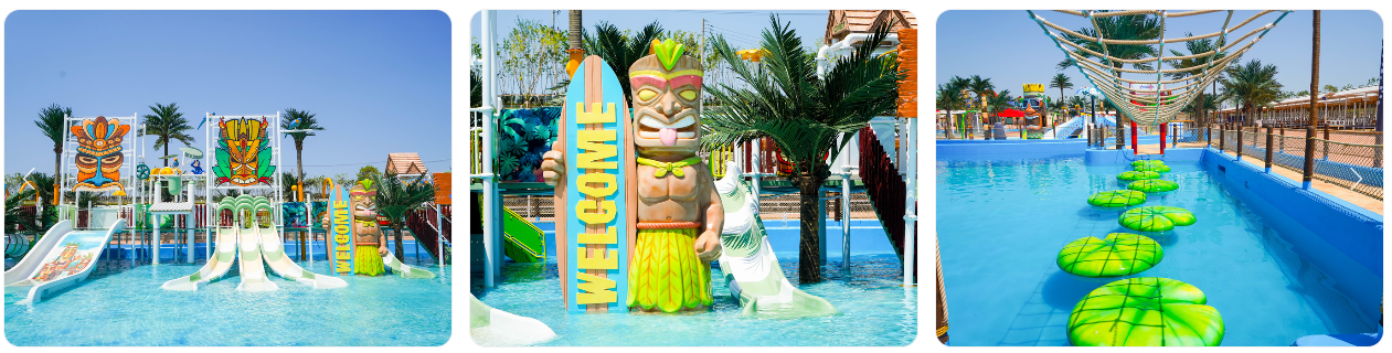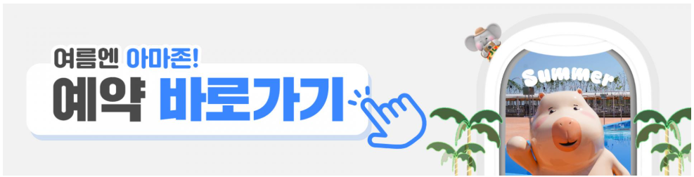 - 아마존풀 : 13세 이하 어린이 전용 공간으로 30cm 수심에 안전하게 놀 수 있고, 미취학 아동은 보호자 동반이 필요합니다.