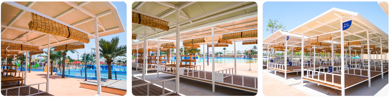 당진 아마존 워터파크의 카바나는 직접 음식을 조리하거나 외부 음식을 가져와 즐길 수 있어요. 평상형, 탁자형으로 선택할 수 있으며, 4~12인 규모로 이용 가능합니다. 다만 전기그릴, 전기밥솥, 에어프라이어, LPG가스통은 사용이 불가하고, 음식물 쓰레기는 제공받은 봉투에 담아 분리수거해야 합니다.