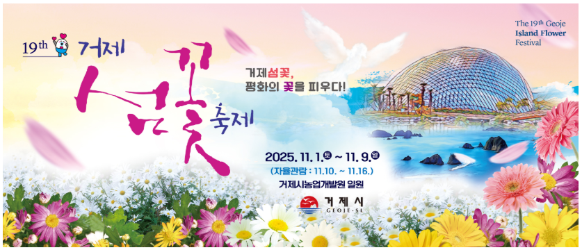 2025년 11월 1일부터 9일까지, ‘거제섬꽃, 평화의 꽃을 피우다!’ 주제 아래 열리는 이번 축제, 놓치지 마시고 일정 미리 체크해두세요.