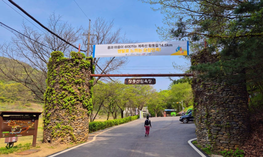 계족산 황톳길은 대전 대덕구 장동에 위치한 장동산림욕장 입구에서 시작된다. 아모레퍼시픽이 조성해 지속적으로 관리하는 이 길은 10년 이상 황토를 덧입히며 자연 친화적 환경을 유지하고 있다. ‘맨발 걷기’ 체험이 가능해 발바닥으로 흙의 온기를 느끼며 숲을 걷는 특별한 경험을 선사한다.
