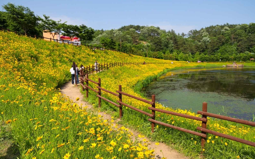 5월 함안 악양생태공원에 금계국이 만개했습니다. 5월 힐링 산책지로 입장·주차 모두 무료인 봄꽃 산책 명소로, 낙동강 전망과 함께 여유로운 나들이를 즐겨보세요.