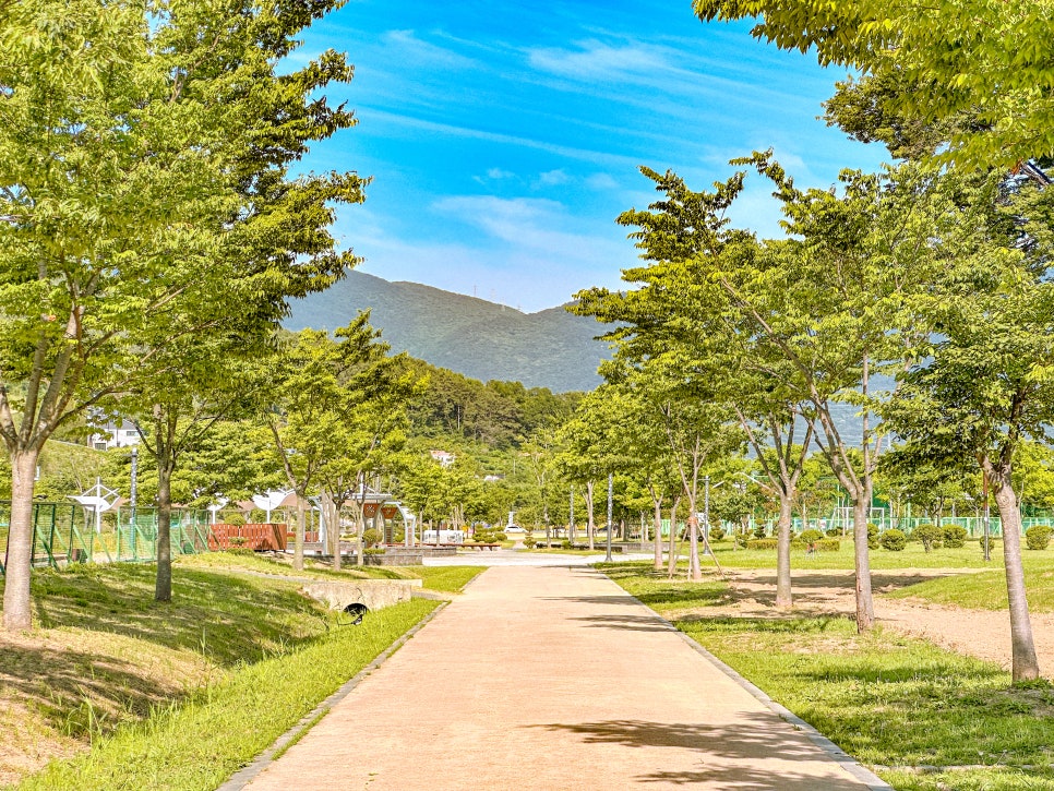 황산공원의 또 다른 매력은 ‘맨발 황톳길’입니다. 캠핑을 즐긴 후에는 이 산책로를 따라 걷는 시간을 가져보는 것도 추천할 만합니다. 맨발로 걷다 보면 황토의 따뜻한 감촉이 발바닥에 전해지며 피로가 풀리는 기분을 느낄 수 있습니다.