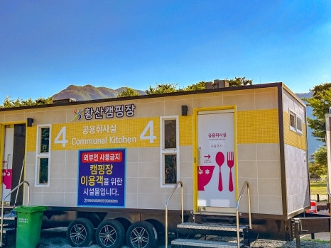 캠핑장에는 기본적인 전기 시설과 취사장, 화장실이 잘 정비되어 있습니다. 무엇보다 눈에 띄는 점은 ‘배달존’ 운영입니다. 캠핑장에 머무는 동안 인근 가게에서 음식을 배달받을 수 있어 직접 식사를 준비하지 않아도 편리하게 즐길 수 있습니다. 이 점은 가족 단위 방문객들에게 특히 호평을 받고 있습니다.