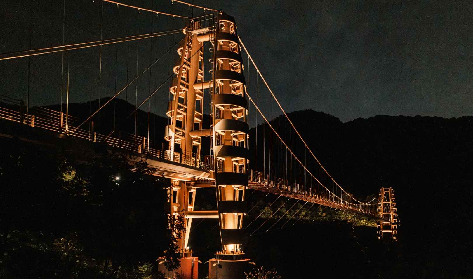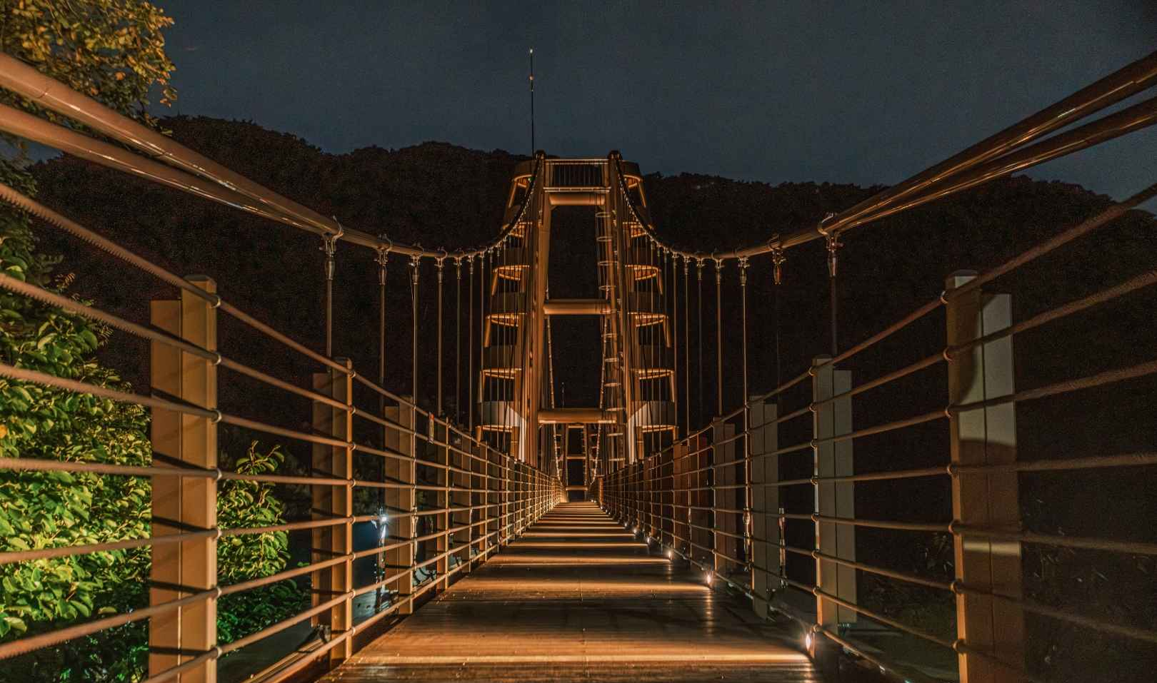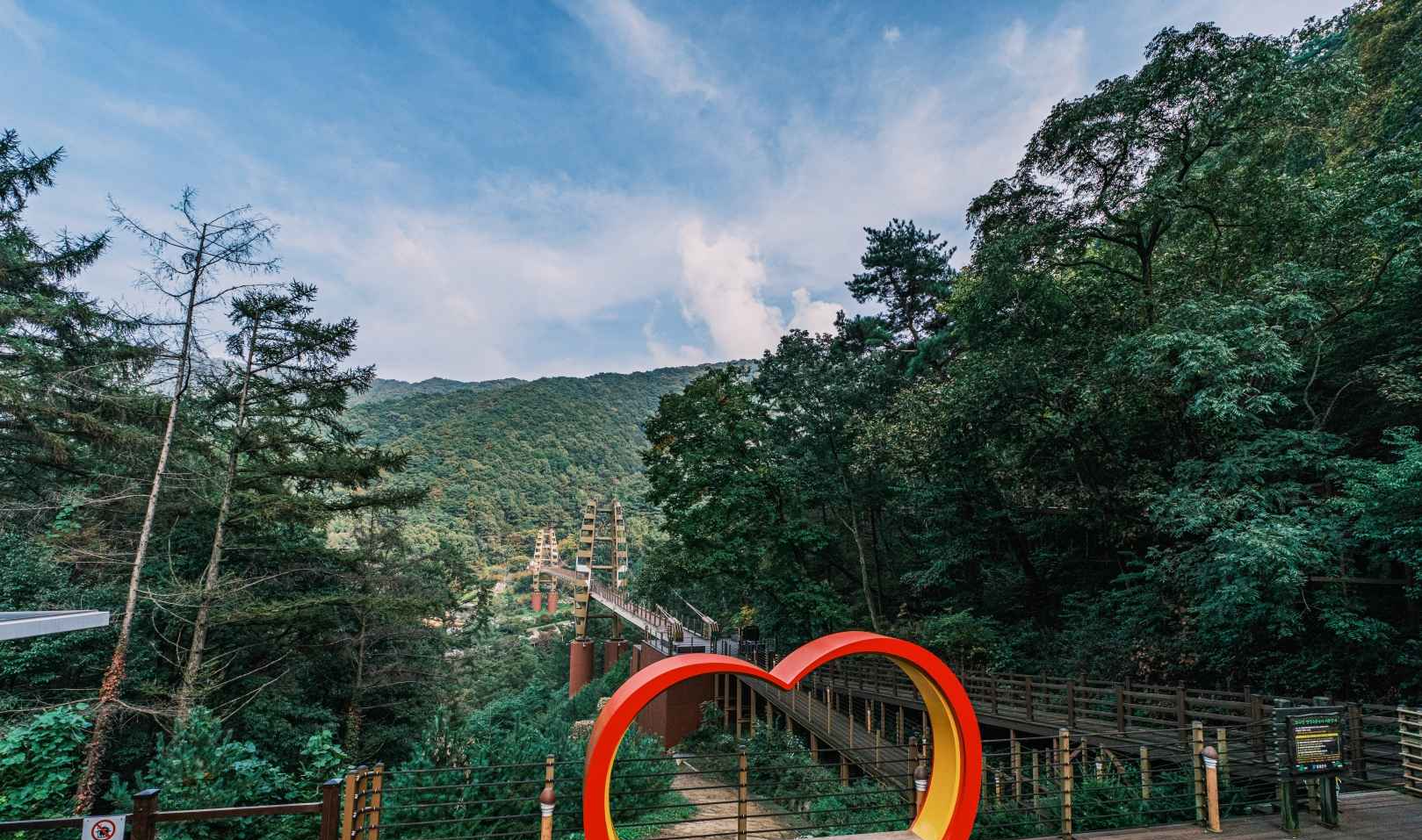 좌구산 명상구름다리는 좌구산 자연휴양림 안에 조성된 다리로, 총 길이 230m, 폭 2m 규모로 설계됐습니다. 지면으로부터 50m 높이에 설치되어 협곡을 가로지르는 장관을 선사하며, 걸을 때마다 약간씩 흔들리는 구간이 있어 심장을 두근거리게 합니다. 실제 출렁이는 구간은 130m로, 걸음을 내디딜 때마다 느껴지는 미세한 진동이 색다른 긴장감을 줍니다.