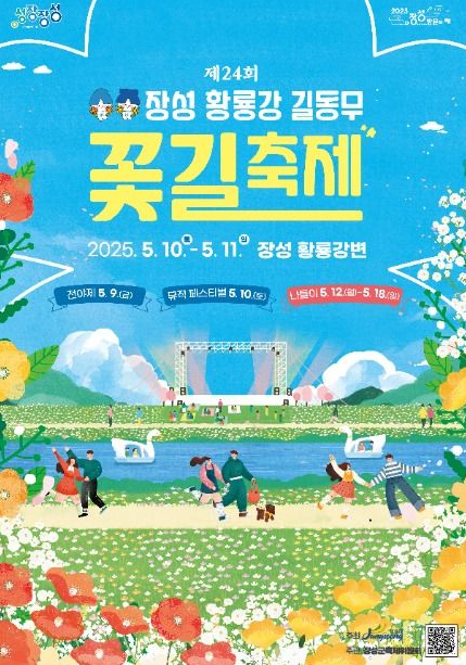 장성 황룡강 길동무 꽃길 축제는 매년 봄 단 2~3일만 열리는 짧은 일정의 축제다. 2025년 일정은 5월 10일과 11일 단 이틀이며, 이후에는 5월 12일부터 18일까지 나들이객 맞이 기간으로 전시물은 일부 유지되지만 행사 프로그램은 종료된다.