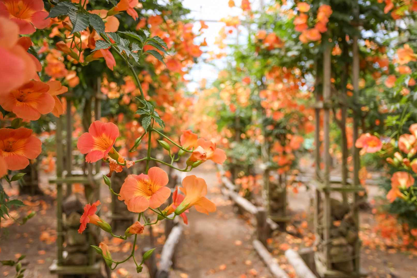 비체올린은 ‘빛의 채올림’이라는 뜻처럼 감성적인 분위기의 정원과 자연 산책로가 어우러진 공간입니다. 여름꽃 능소화축제가 열리는 이 시기에는 약 1,000미터 길이의 능소화 터널이 정원의 중심을 따라 조성되어, 압도적인 주황빛 꽃길이 펼쳐집니다.