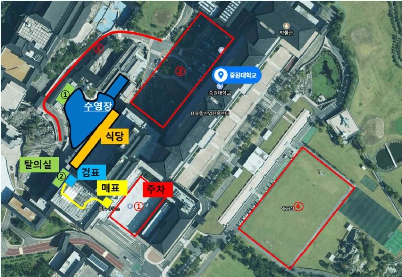 자가용을 이용하시는 분들은 네비게이션에 ‘중원대학교’ 또는 ‘충북 괴산군 괴산읍 동부리 5’를 입력하면 바로 도착 가능합니다. 당일 방문 시 주차는 무료이며, 교내 주차장은 분산되어 있어 현장 스태프의 안내에 따라야 합니다.