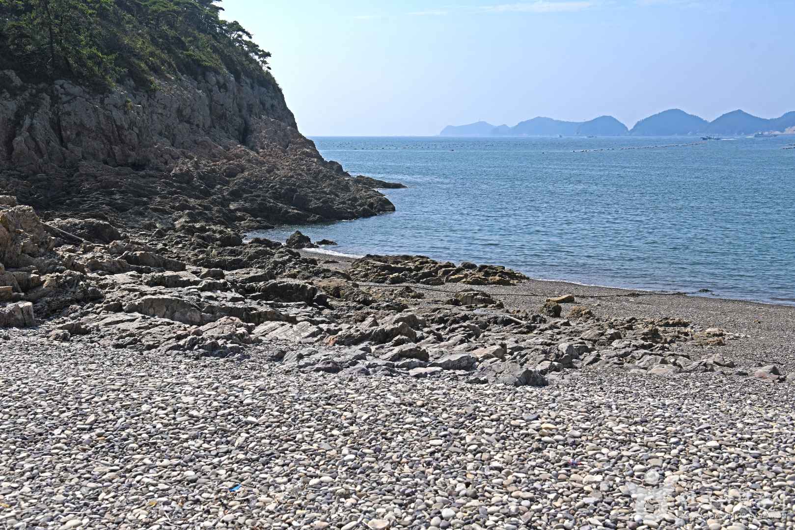 이곳의 가장 큰 특징은 바로 몽돌입니다. 부드럽게 다듬어진 자갈이 넓게 펼쳐져 있고, 잔잔한 파도가 자갈을 스치는 소리는 마치 작은 풍경 악기처럼 마음을 차분하게 만들어 줍니다. 해변을 거닐다 보면 발 밑에서 들리는 자갈 소리까지 하나의 여행의 일부처럼 느껴져, 몽돌해변의 매력을 더욱 특별하게 합니다.
