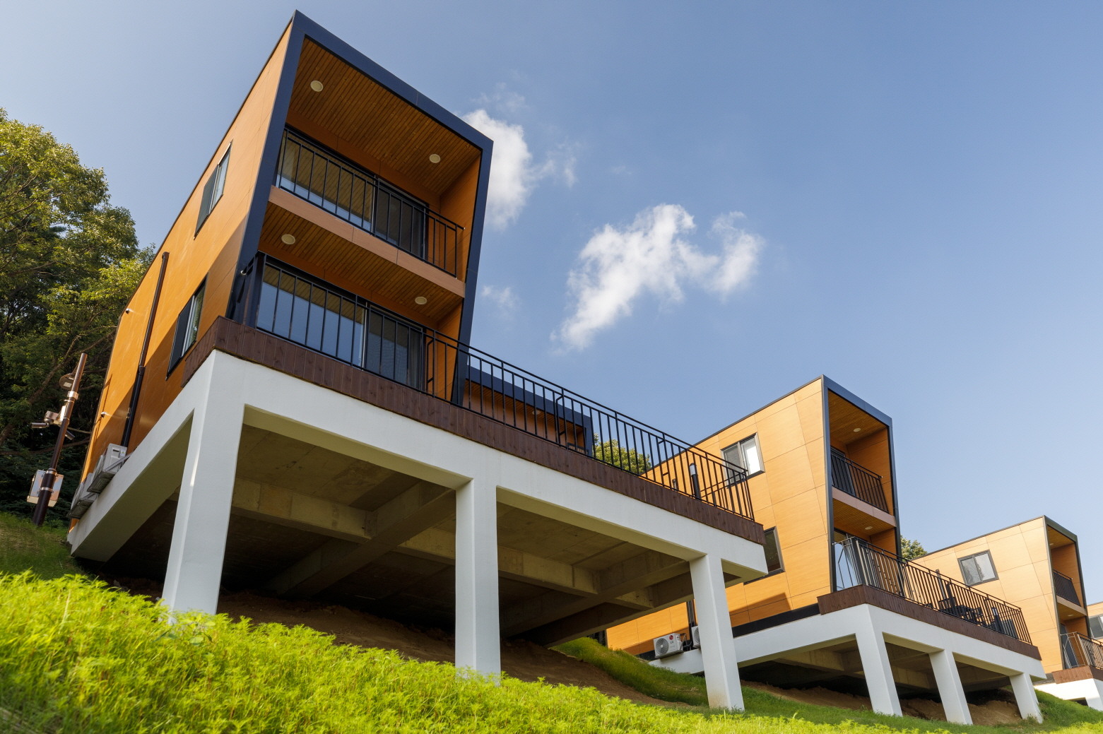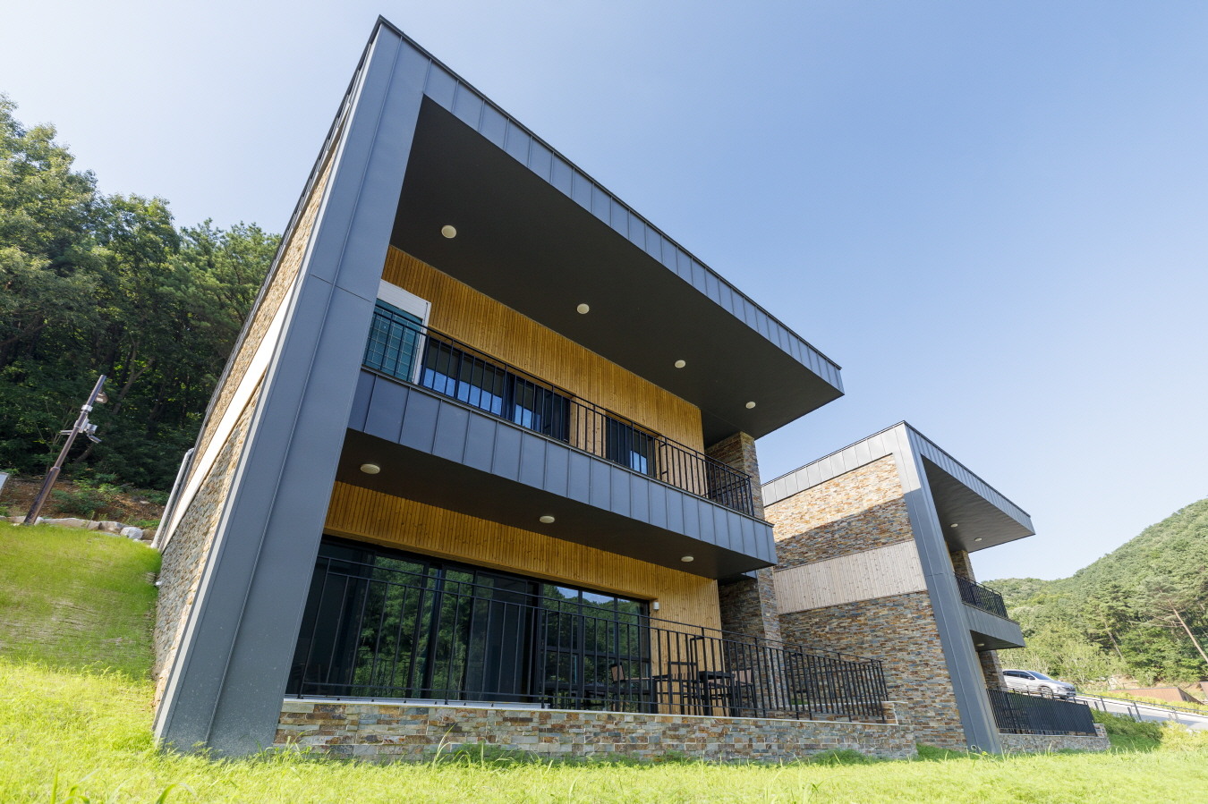 모든 객실은 복층 구조로 되어 있으며 에어컨, 냉장고, 쇼파 등이 구비되어 있어 가족 단위나 단체 여행객이 편하게 머물 수 있습니다. 숙박 이용 시간은 입실일 15시부터 퇴실일 11시까지입니다.