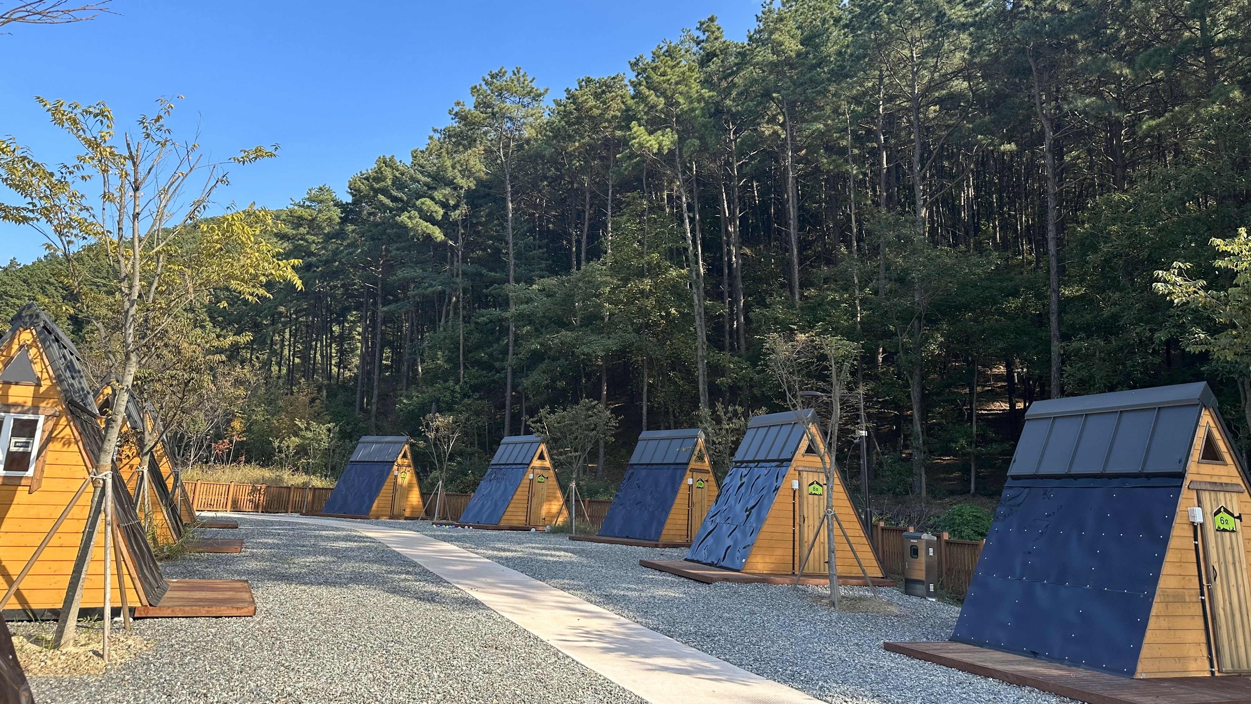 야영데크는 주차장에서 다소 거리가 있어 짐 운반 시 불편할 수 있으나, 자연 경관을 즐기기에는 최적의 위치입니다. 전용 화장실과 주차장이 가까워 이용하기 편리합니다.
