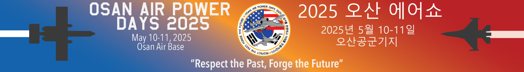 2025 오산 에어쇼는 5월 10일(토)부터 11일(일)까지 이틀간, 경기도 평택시 오산 공군기지에서 개최된다. 공식 명칭은 ‘오산 에어 파워 데이즈 2025’이며, 입장 게이트는 ‘모린 게이트’ 한 곳이다.