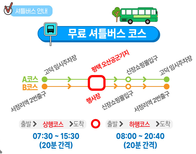 가장 효율적인 이동 방법은 대중교통 + 도보 또는 셔틀 조합이다. 평택역이나 송탄역에서 하차 후 도보나 셔틀을 이용하면 주차 걱정을 덜 수 있다.
