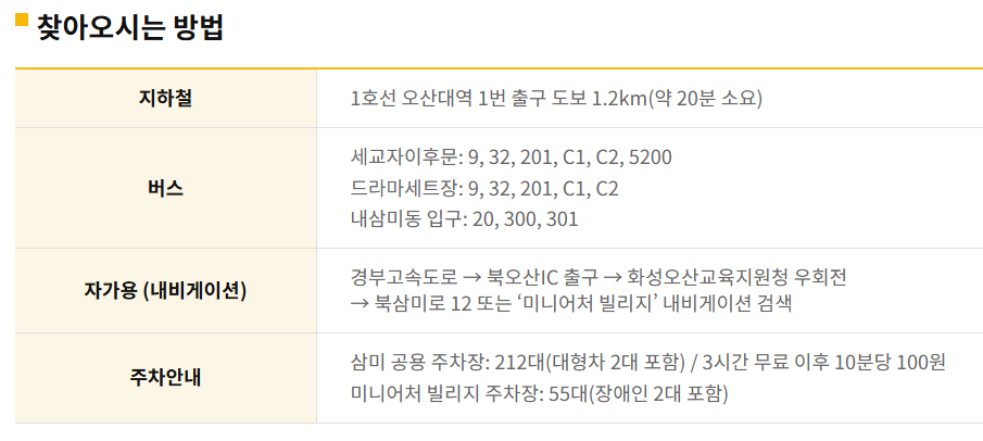 오산 미니어처빌리지 위치 및 운영정보