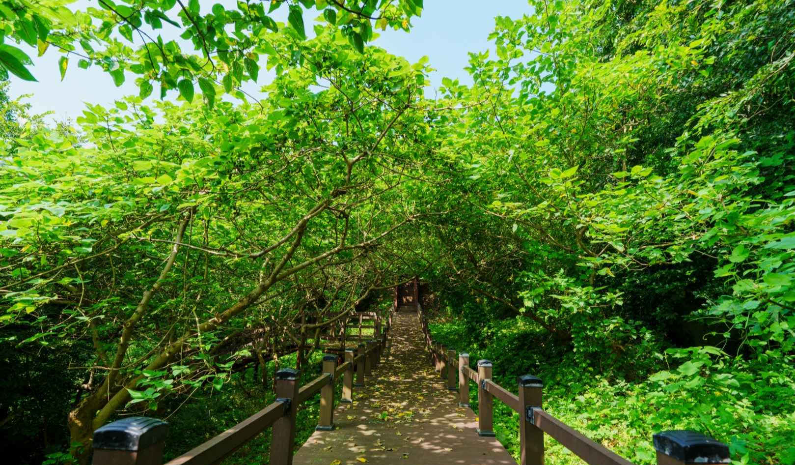 외연도 상록수림은 마을 뒤편 당산 기슭에 자리하며, 천연기념물 제136호로 지정된 귀한 숲입니다. 주요 수종은 팽나무(최대 20m, 지름 1m 초과), 후박나무, 동백나무(최대 18m), 참식나무, 꾸지뽕나무 등으로 구성되어 있으며, 빽빽한 나무들 사이로 이어진 좁은 숲길을 따라 걸으면 마치 수목원 속 탐방 기분을 느낄 수 있습니다.