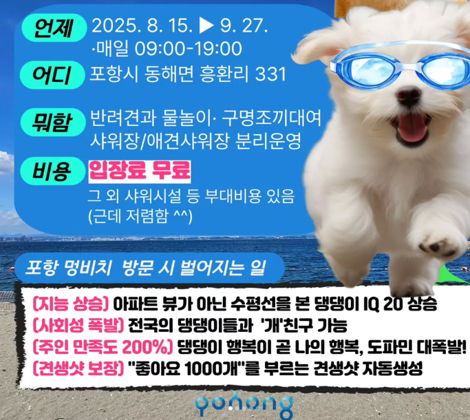 이 포스팅이 유익하셨다면 댓글과 공감으로 응원해 주세요 :) 포항 멍비치에서 반려견과 특별한 여름 추억 만들어보세요!