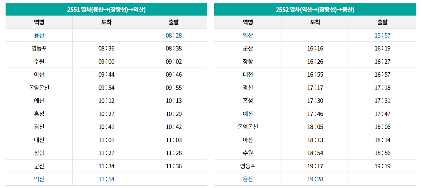 - 군산, 익산 하차 시: 시내 이동을 위한 택시나 시내버스 동선 미리 파악