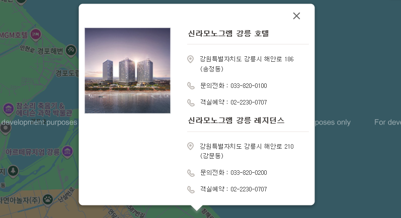 신라모노그램 강릉은 강릉시 해안로 210에 위치해 있으며, 강릉역에서는 차로 약 8분, 고속터미널에서는 약 15분 거리입니다.