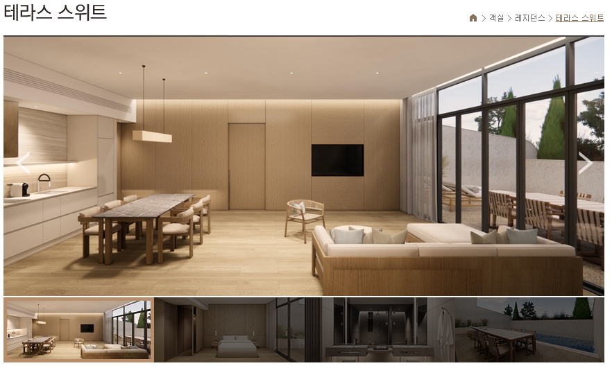 레지던스동은 일부 주방 시설이 포함되어 있어 장기 투숙이나 실속형 여행에 좋아요. 자율 정비 방식으로 운영되며, 에노테카 와인룸, 무인택배함, 코인런드리 등 레지던스 전용 편의시설도 마련돼 있습니다.