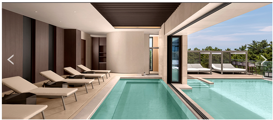레지던스동 수영장은 좀 더 프라이빗한 분위기로, 조용한 휴식을 선호하는 분들께 추천드려요. 트리니티 스파와 연계한 스파 패키지도 이용 가능하며, 야외 좌식 공간도 마련되어 있어 독서나 선탠도 즐기기 좋아요.