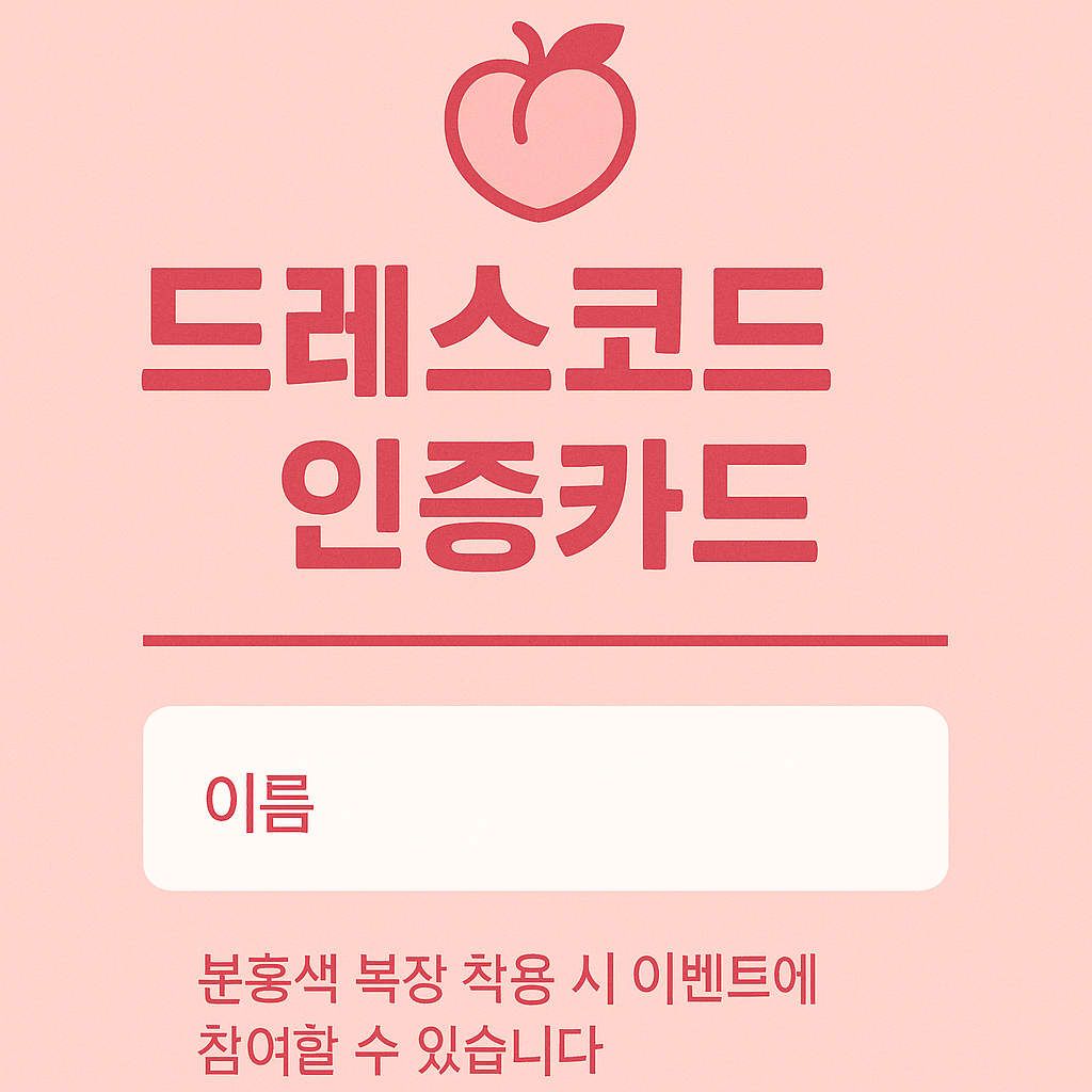 이번 축제에는 특별한 드레스코드 이벤트도 마련돼 있어요. 분홍색 계열의 옷, 가방, 모자, 액세서리 등을 착용하면 다양한 혜택이 주어집니다. 기본적으로 조치원 복숭아 2개와 할인권, 인생네컷 촬영권, 스탬프투어와 미니올림픽 참여 기회가 제공되며, 하루 최대 900명까지 한정 진행됩니다. 분홍 아이템만 준비하면 누구나 참여할 수 있어 방문 전에 꼭 챙겨가시는 걸 추천드립니다.