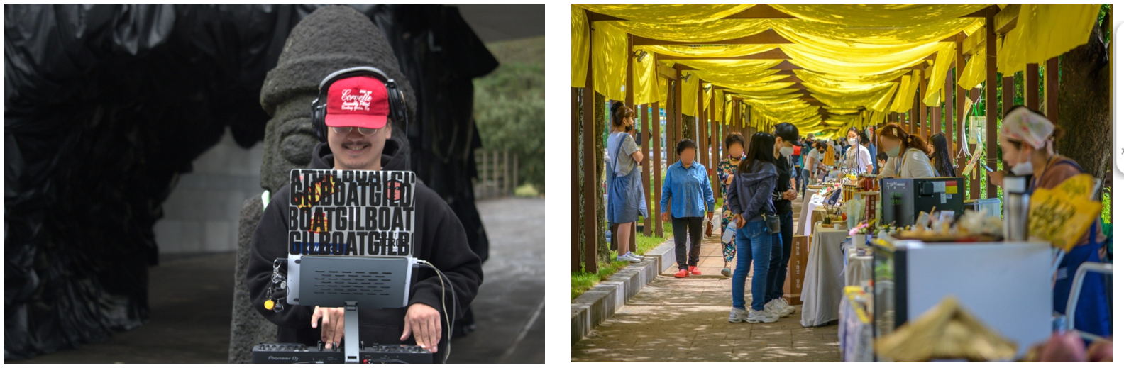 제주 전역에 마련된 축제 거점 공간인 페스티벌 사이트에서는 전시, 체험, 먹거리 등 다양한 콘텐츠가 운영됩니다. 지역 예술가들의 작품부터 로컬 푸드 부스까지, 자유롭게 둘러보며 축제 분위기를 만끽할 수 있습니다.