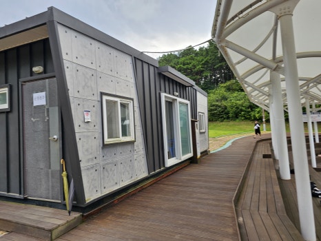 물놀이장 옆에는 나무 데크로 꾸며진 넓은 쉼터가 있어, 돗자리를 깔고 휴식을 취하기 좋습니다. 테이블과 의자도 여유롭게 배치되어 있어 간단한 간식이나 생수를 챙겨오시면 더욱 편안하게 이용할 수 있습니다.